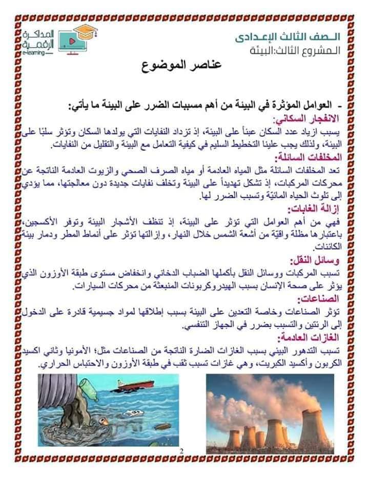 بحث كامل عن البيئة لطلاب الصف الثالث الاعدادي جاهز للطباعه 2020 صباح مصر