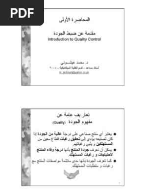 المحاضرة الأولى مقدمة عن ضبط الجودة Introduction To Quality Control Ppt Download