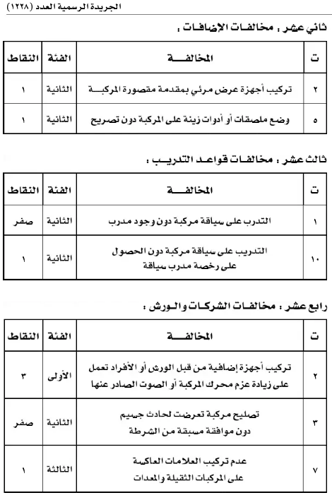 شرح جدول النقاط للمخالفات المرورية تعقيب الإلكتروني