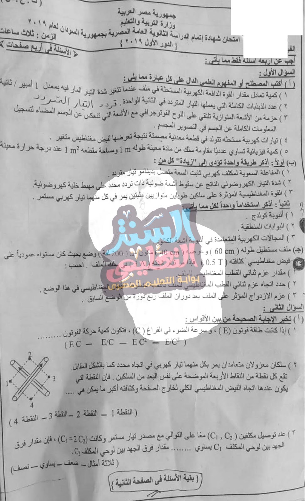 امتحان السودان الفيزياء للصف الثالث الثانوي 2019