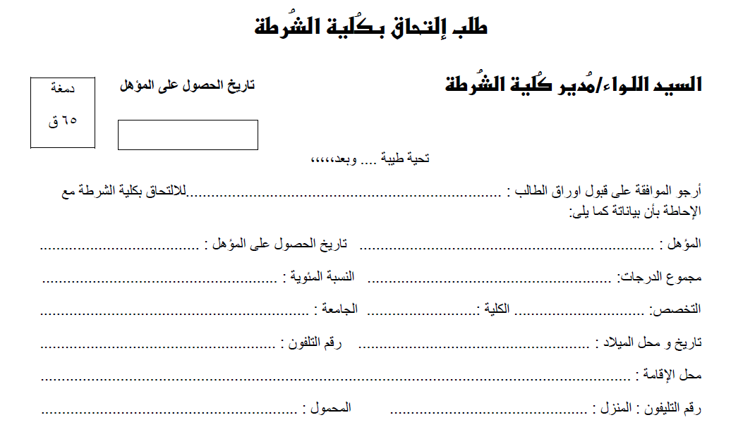 طباعة نموذج طلب الإلتحاق الورقى ونموذج الإقرارات كلية الشرطة
