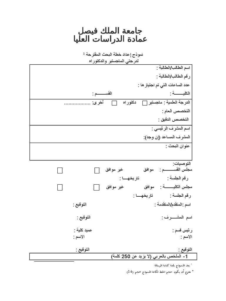 قوالب لكتابة خطة البحث من جامعات عربية وأجنبية مختلفة