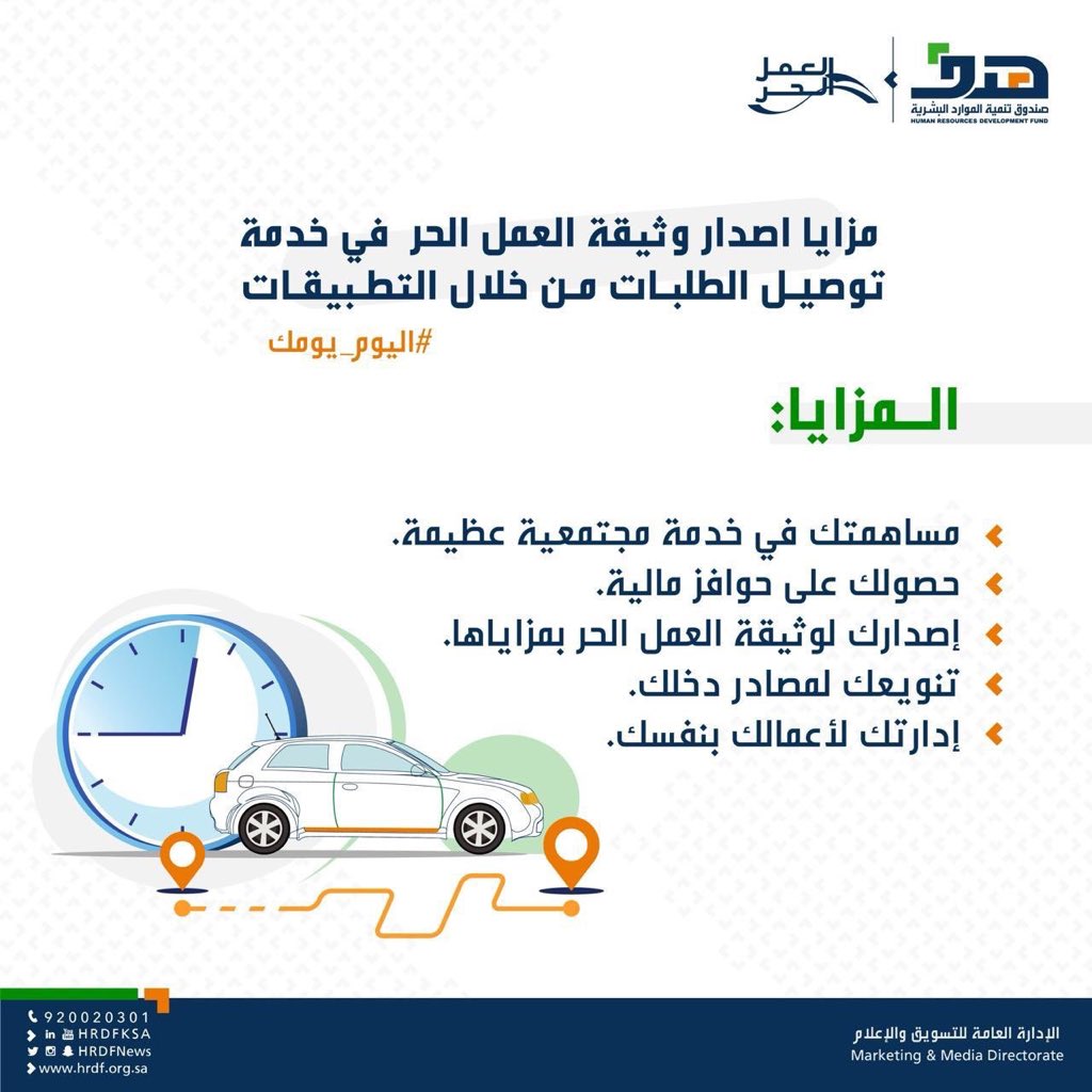 هدف Pa Twitter تعرفوا على مزايا إصدار وثيقة العمل الحر للالتحاق ببرنامج دعم العاملين في خدمة توصيل الطلبات عبر بوابة العمل الحر اليوم يومك للتسجيل Https T Co Ivfeijdbcy كلنا مسؤول Https T Co Nog6f1gwna