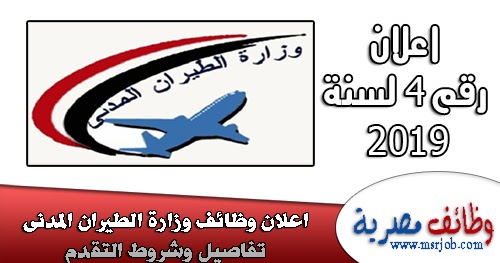 وظائف وزارة الطيران المدنى اعلان رقم 4 لسنة 2019 تطلب حاصلين على الاعدادية