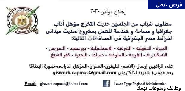 مطلوب مهندسين مدني وخريجين اداب جغرافية ومساحة بمشروع تابع الجهاز المركزي للتعبئة والاحصاء وظائف جميع المجالات ومنوعات تهمك